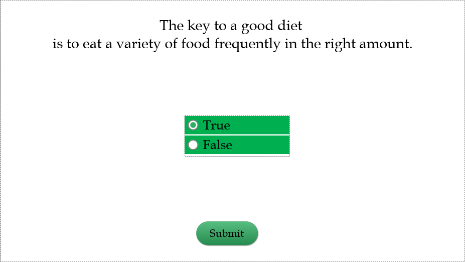 Therefore, if you want all of the questions in your project to have the same format, open the View tab > Slide Master > Question Layout > make any changes in this layout. For example, change the font size and customize the Submit button: