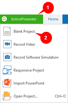 Step 2: Click Blank Project (2). ActivePresenter will launch a new project with a blank slide.