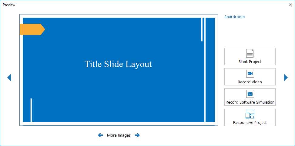 A blank project contains blank slides where you can add contents such as images, video/audio clips, and slides from ActivePresenter projects or PowerPoint presentations, etc.