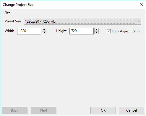 After that, the Change Project Size dialog will pop up, do one of the following: