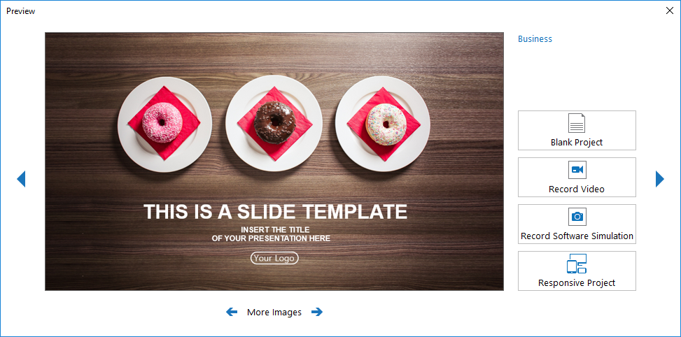 Let’s say you want to create a new project based on the “Business” slide template. Do the following: